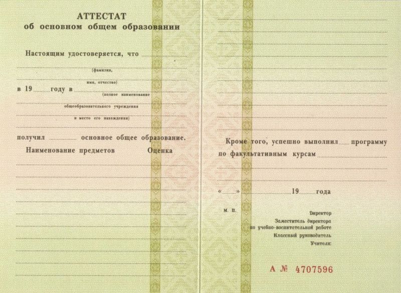 Аттестат за 9 классов. Цена: